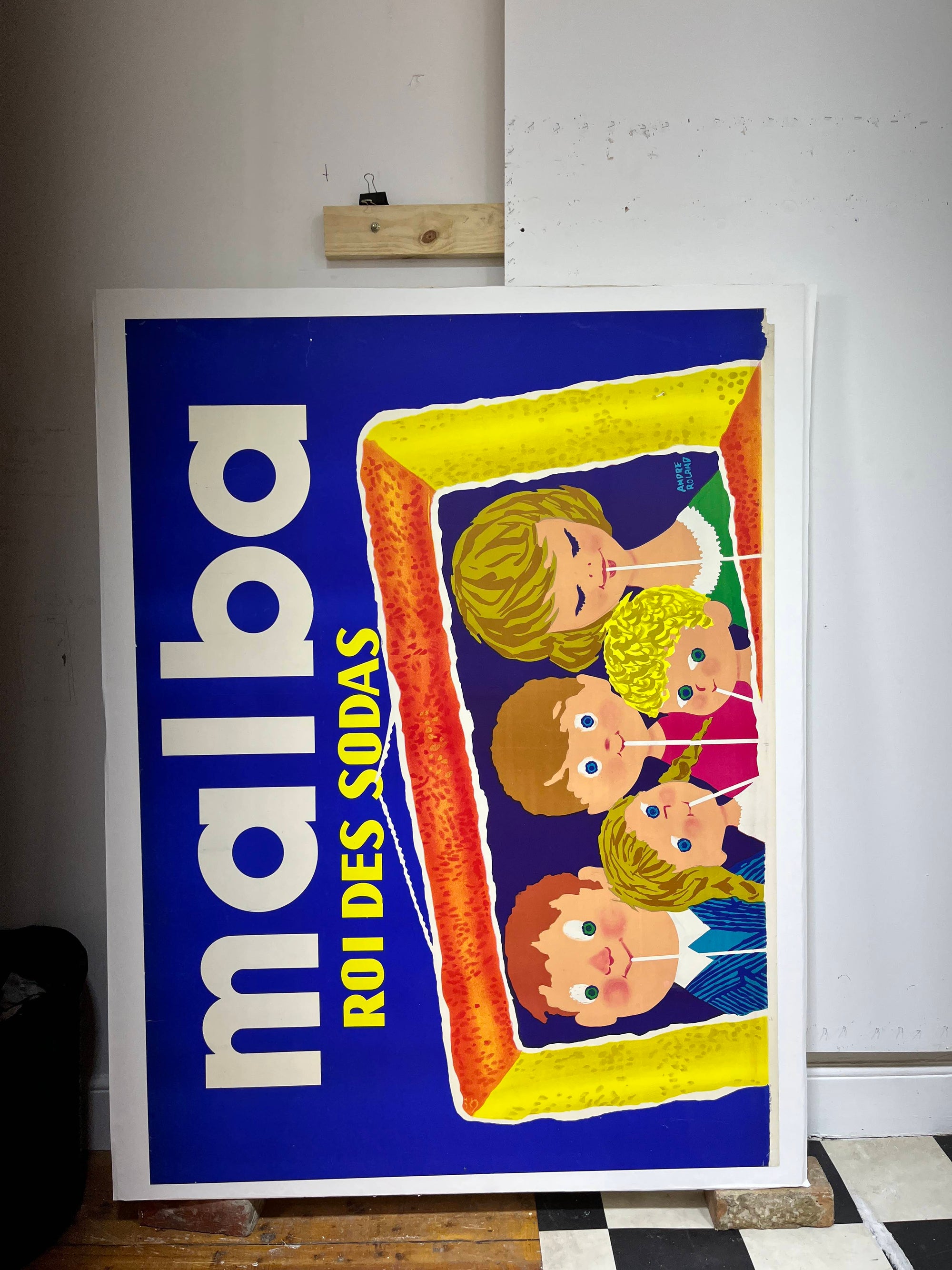 Malba Soda was a popular mid-20th-century French soft drink, promoted with colourful, playful advertising emphasising refreshment and family enjoyment. Its vintage posters are now collectible examples of classic French commercial art.