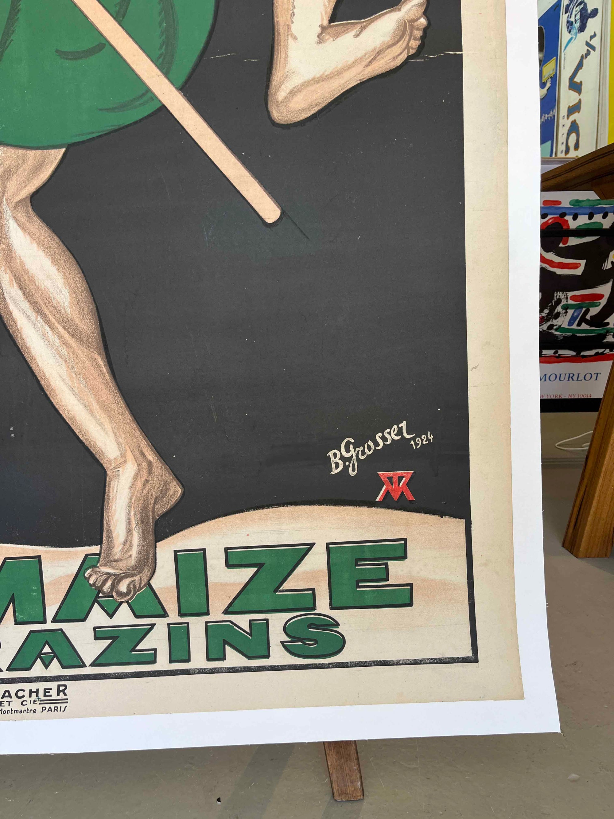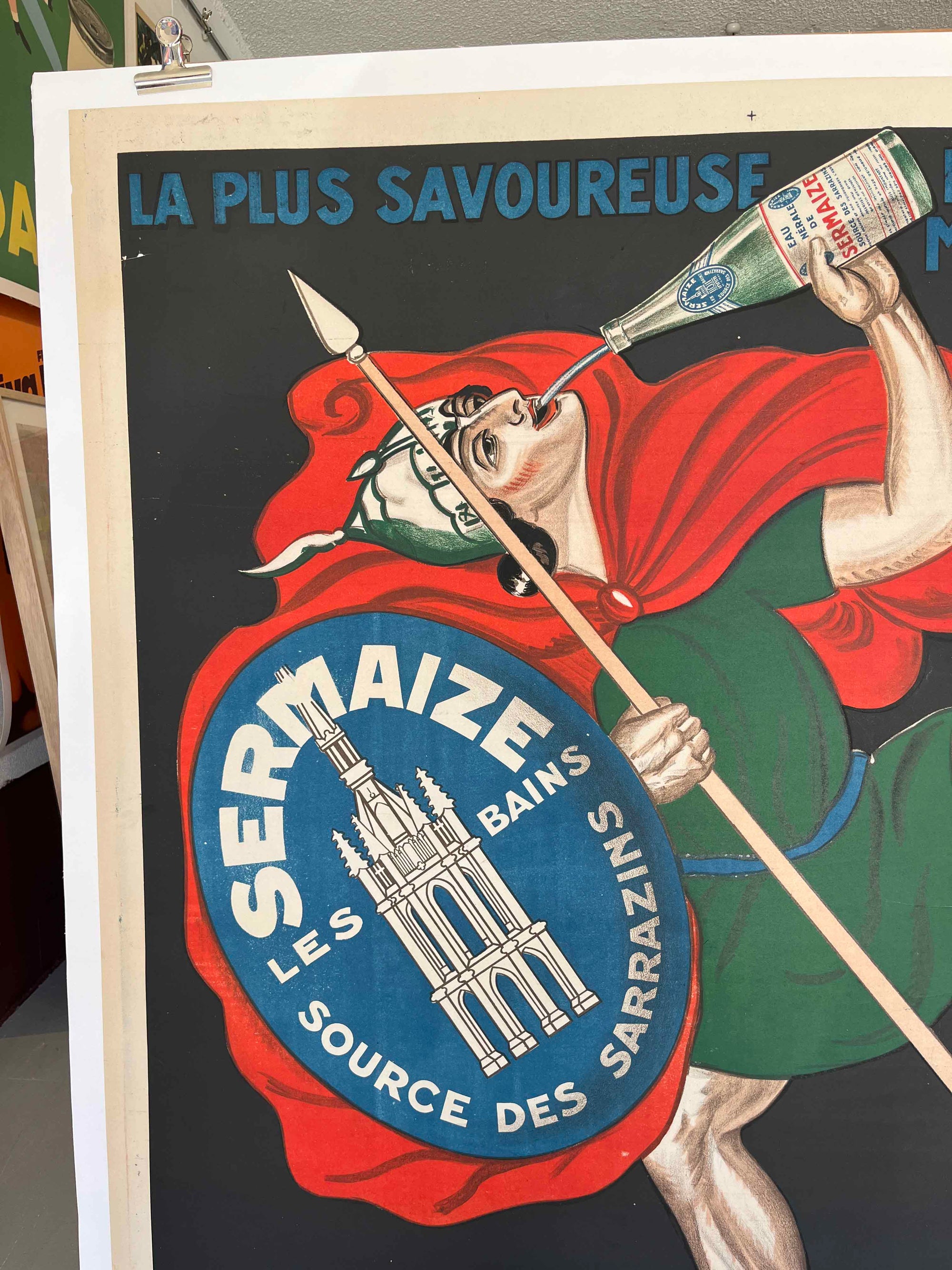 This 1924 French advertising poster, “Source des Sarrazins – Sermaize-les-Bains (Marne)” by B. Grosseur and printed by Risacher, Paris, promotes the region’s famed mineral spring and spa culture. Created during the interwar boom in thermal tourism, it likely features a scenic depiction of the spring or bathhouse, inviting visitors to the healing waters of Sermaize-les-Bains.