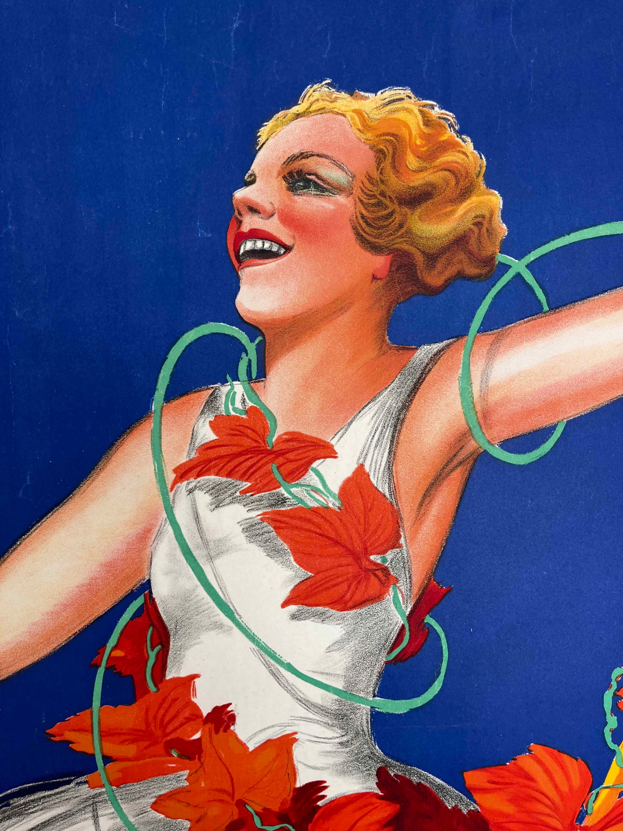 The Kina Lillet poster by Robys (Robert Wolff) uses vibrant colours and dynamic composition to promote the celebratory aperitif. A woman adorned in grapes and bright hues adds to the drink's allure. The poster remains iconic and is still used in advertising today.