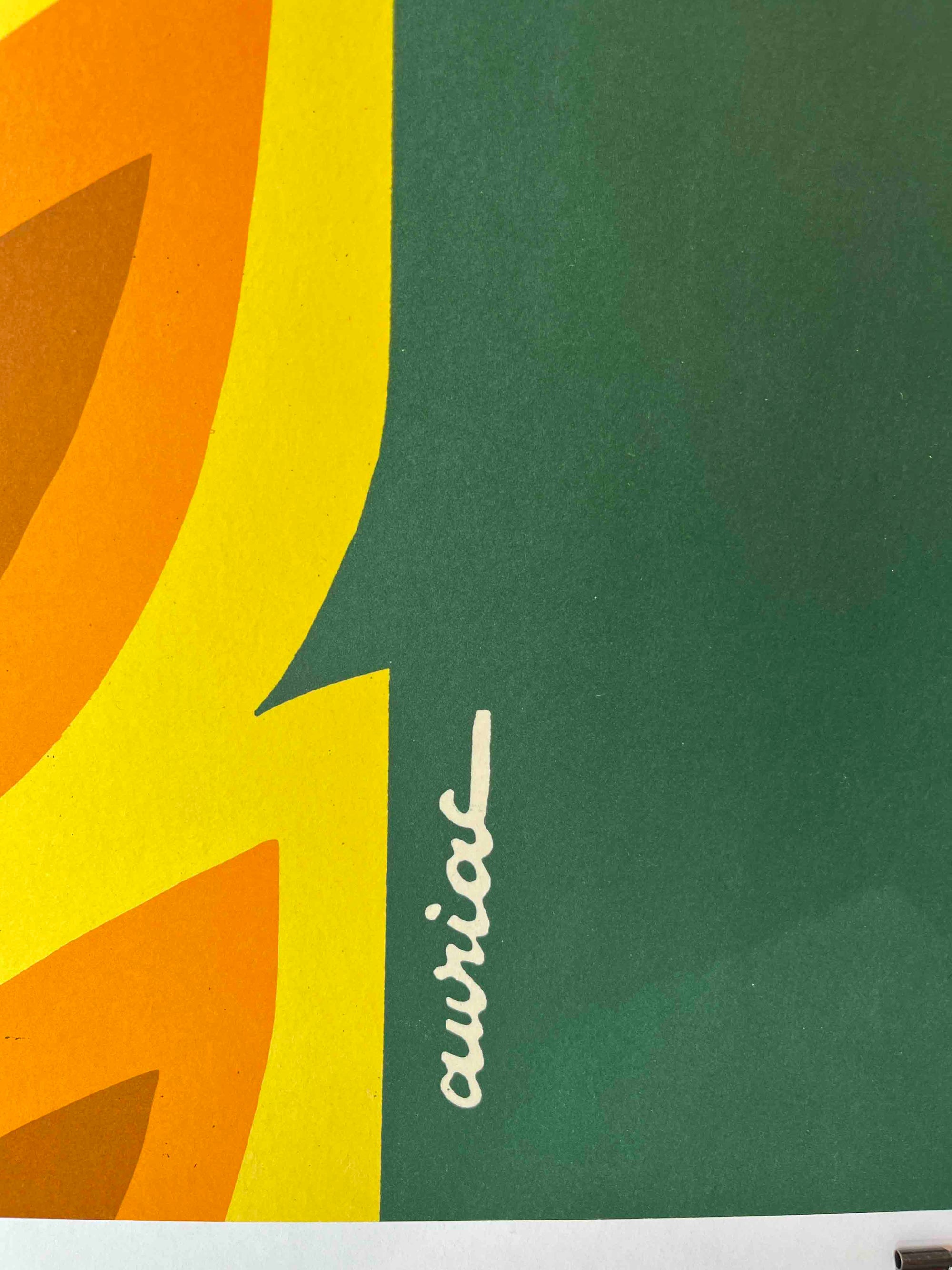 Designed by the French artist Jacques Auriac forthe Salon International de l'Agriculture (International Agricultural Show) held in Paris from March 2 to 9, 1980. The design features an abstract representation combining a rooster and an ear of wheat, symbolising French agriculture, and such original lithographs are popular items for
