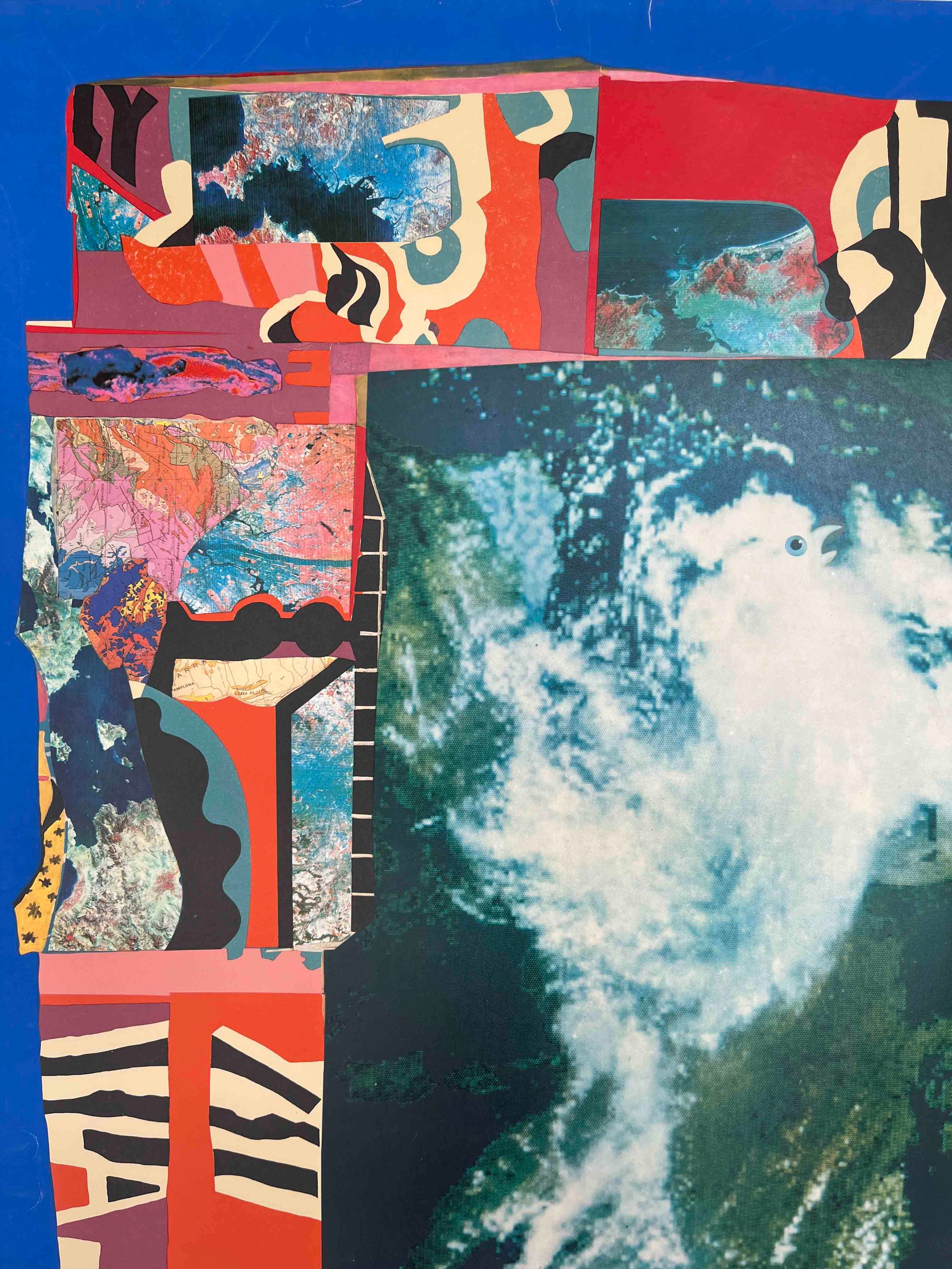 Bezombes combines vibrant abstract forms with photographic imagery of the earth, creating a collage-like composition that reflects the experimental graphic style of the period. The colourful typography and bold modern layout communicate the idea of discovering a “new world” through air travel, capturing the optimism and cultural dynamism associated with global travel in the 1960s.