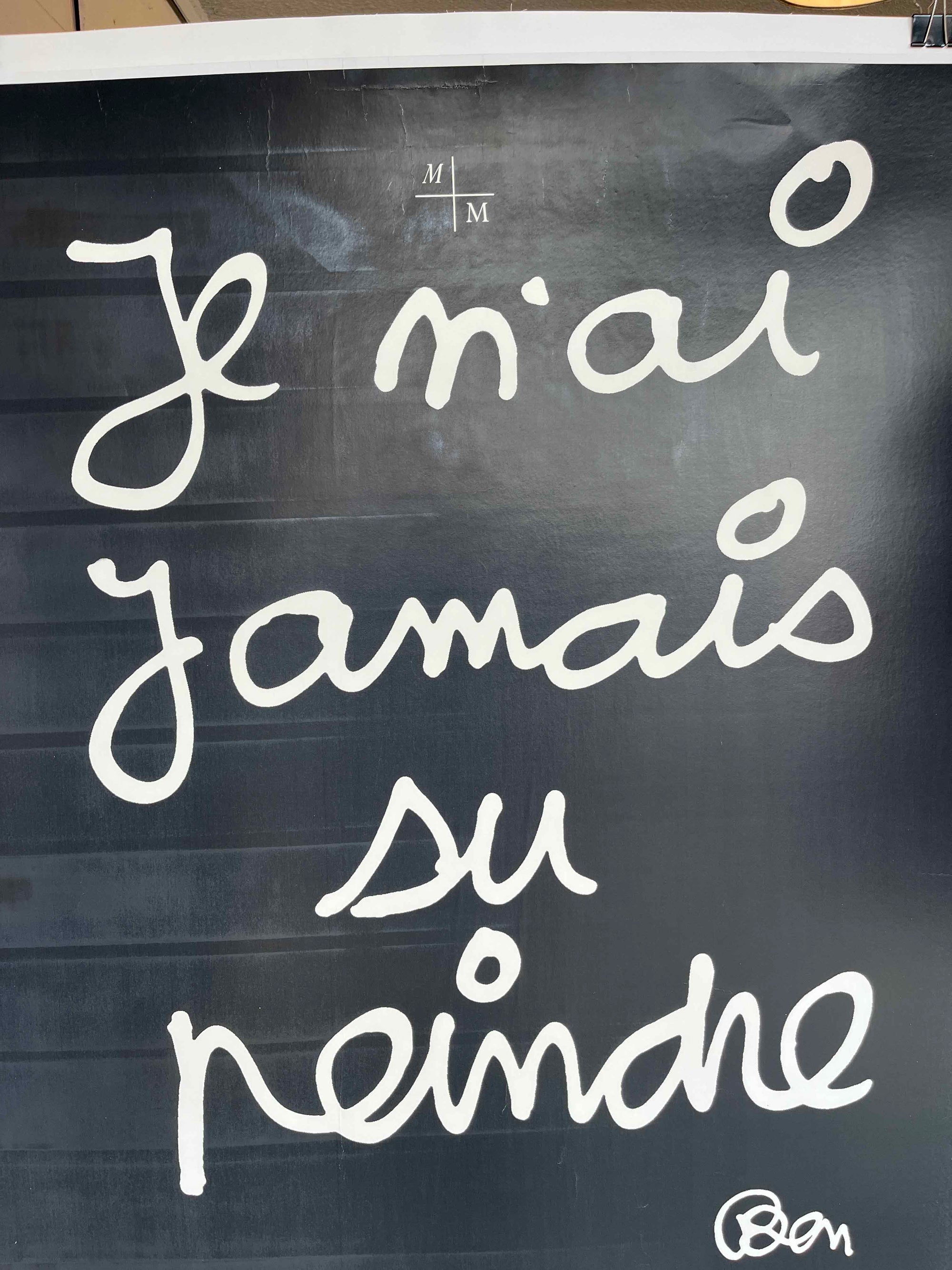 This poster advertises a 1995 retrospective exhibition for the French-Swiss Fluxus artist Ben Vautier (known as BEN) at the contemporary art museums of Marseille. The main text, a signature piece of his conceptual 'word art,' reads 'Je n'ai jamais su peindre' ('I never knew how to paint'), challenging traditional ideas of artistry.
