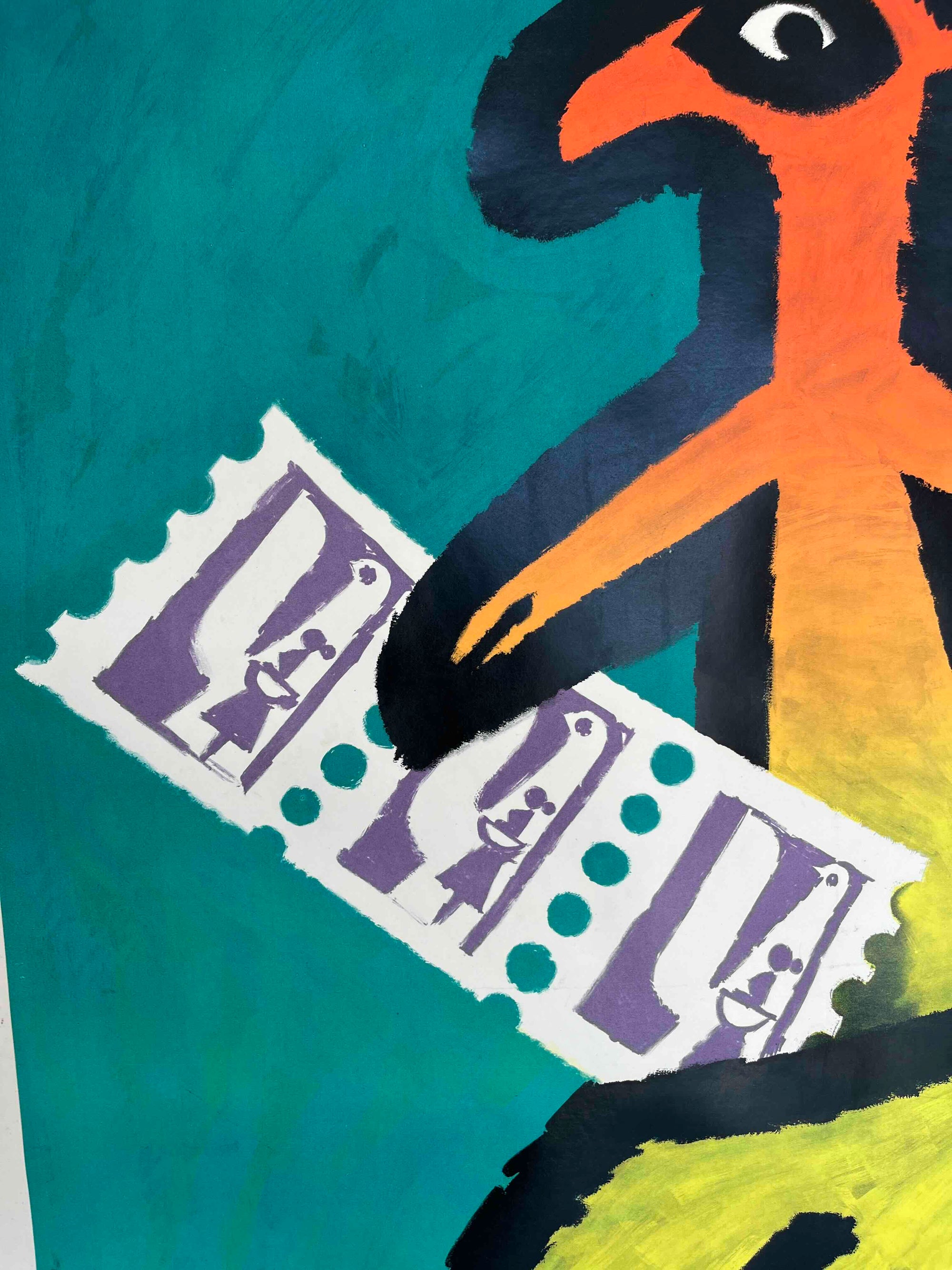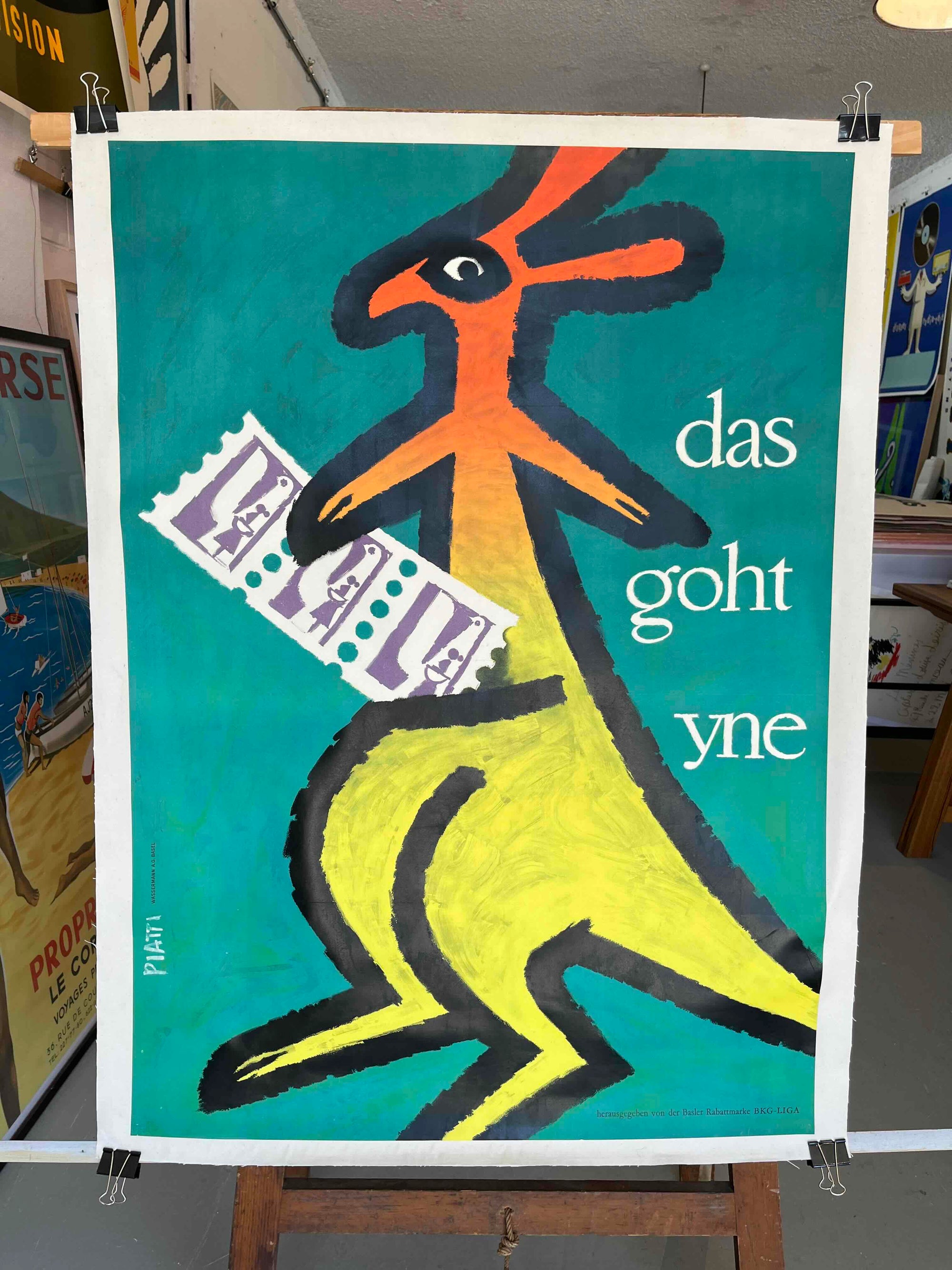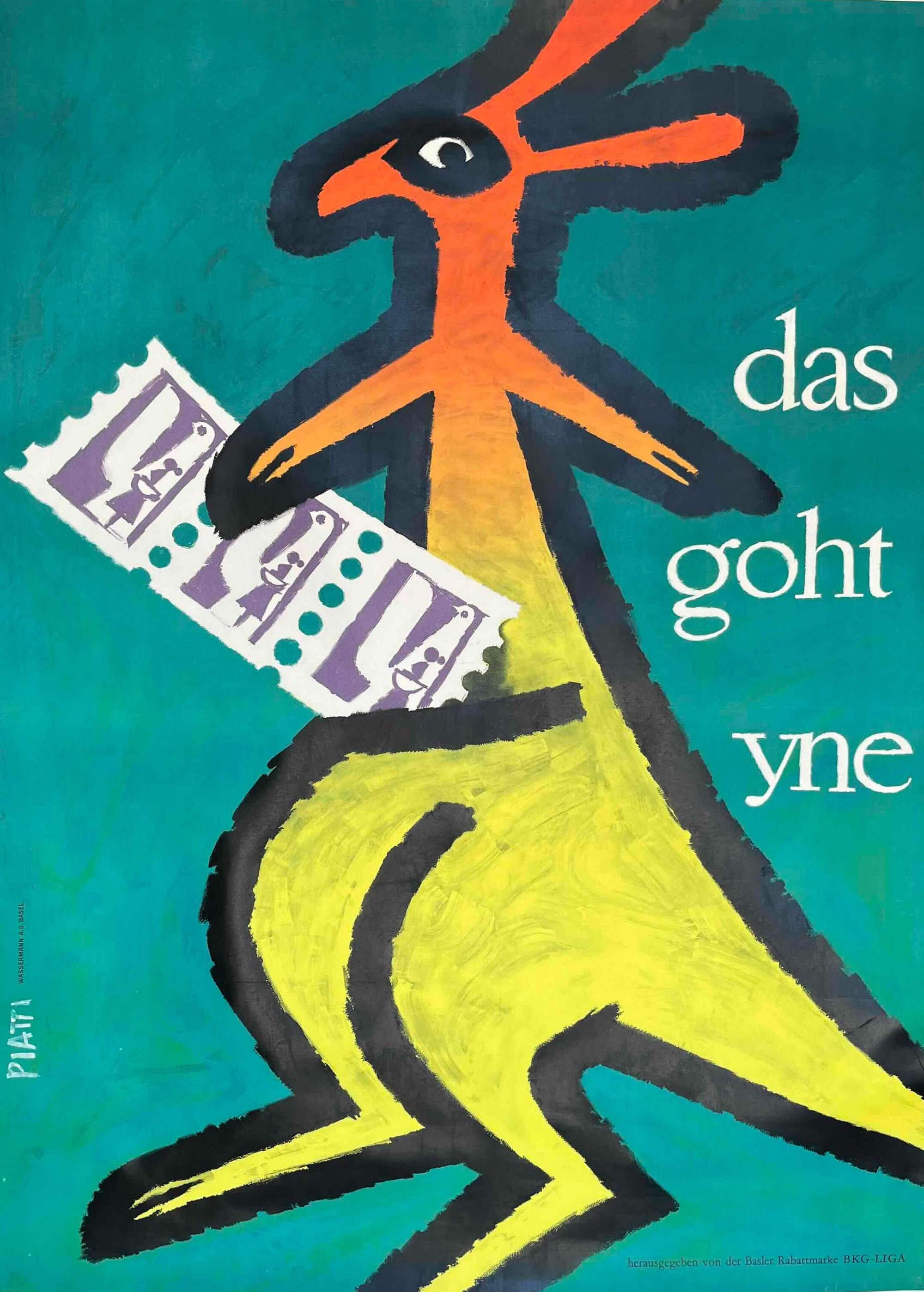 Created by the Swiss graphic artist Celestino Piatti in 1953. The text is Swiss German and roughly translates to 'That Goes In' or 'That Sinks In', in the context of the stamp's use.