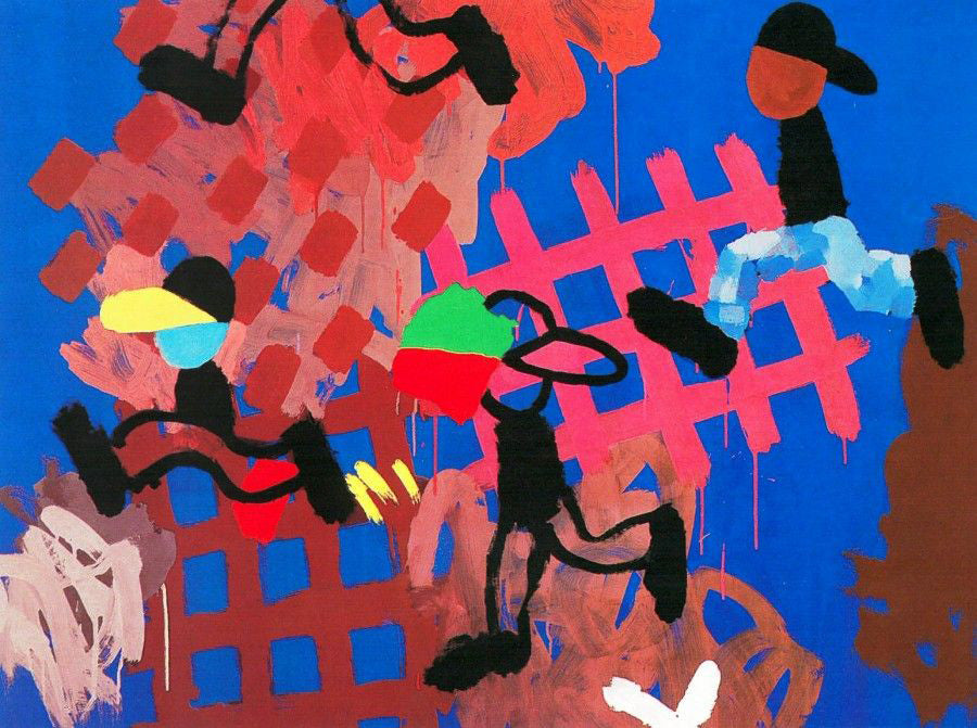 A 1993 sans titre poster by Michel Quarez, this work captures his shift into a more expressive, painterly style. Multiple loose, abstract figures move across a deep blue ground, built from bold, gestural strokes, with a pink grid adding structure to the composition. It’s less about a clear narrative and more about energy and rhythm – a raw, layered piece that sits right at the point where Quarez’s work becomes more instinctive and art-driven.